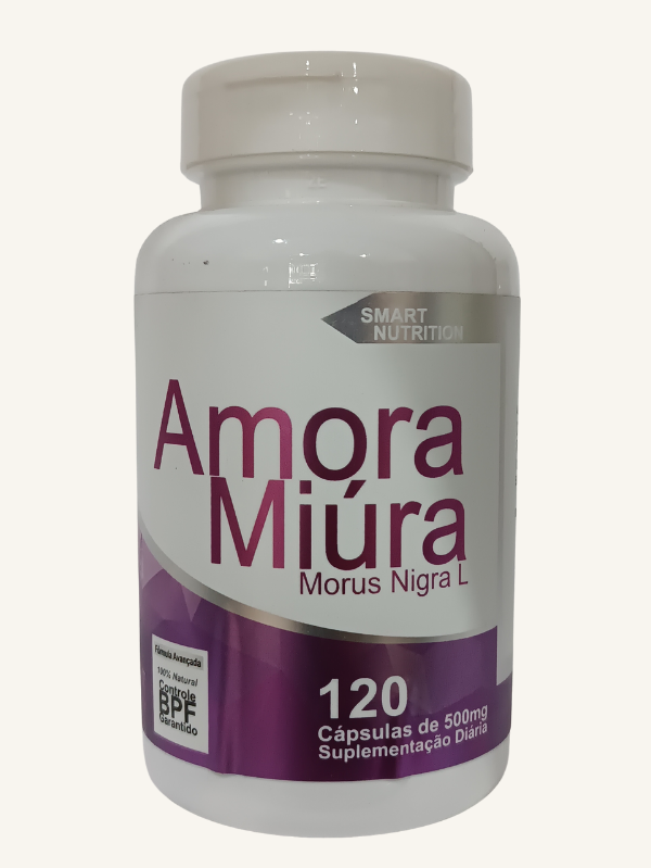 O Amora Miúra é um suplemento alimentar natural em cápsulas, formulado com o extrato de Morus nigra L., conhecido por sua origem vegetal e pureza.
